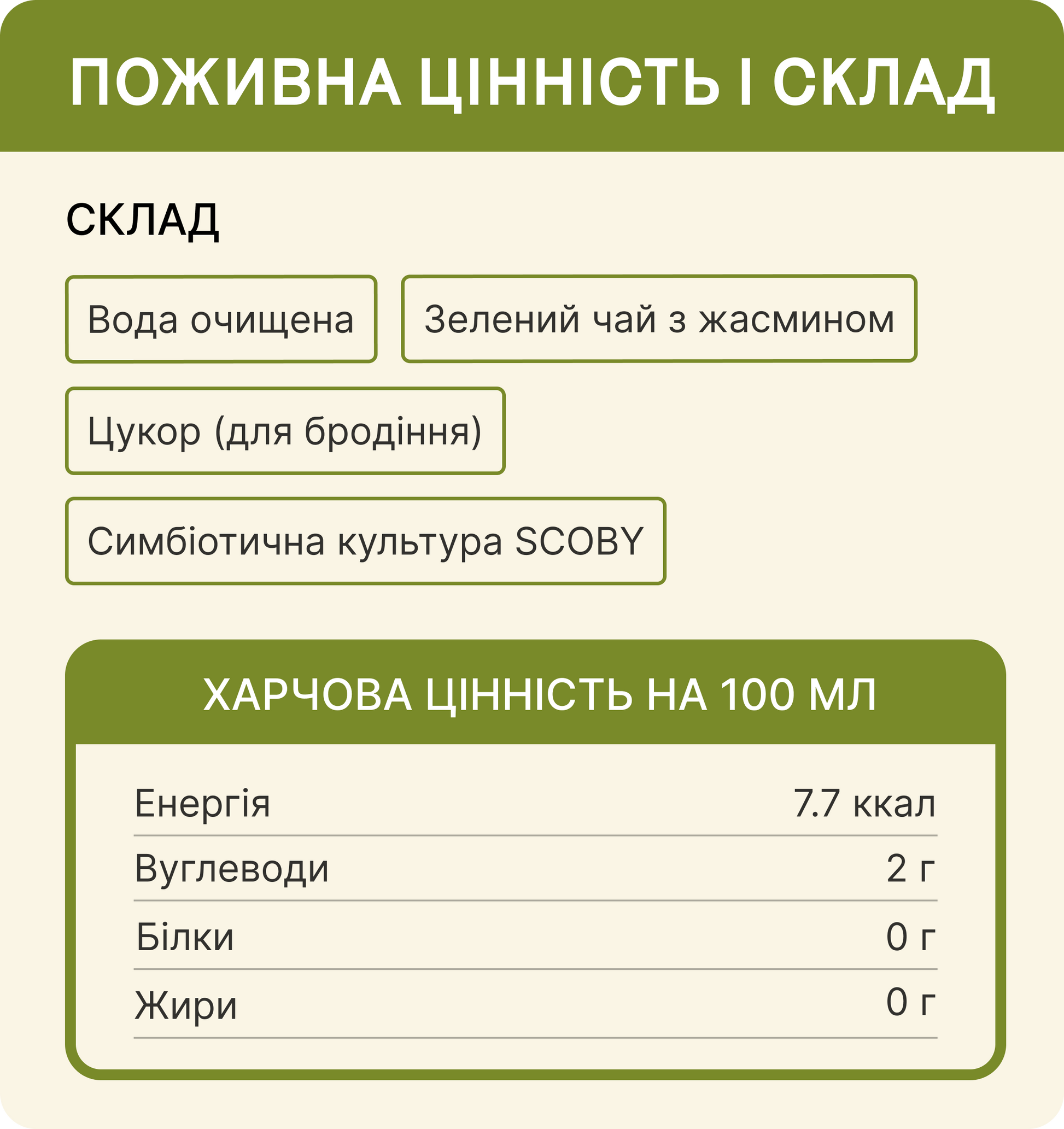 Зелений чай з жасмином, цукор для бродіння, жива культура SCOBY
